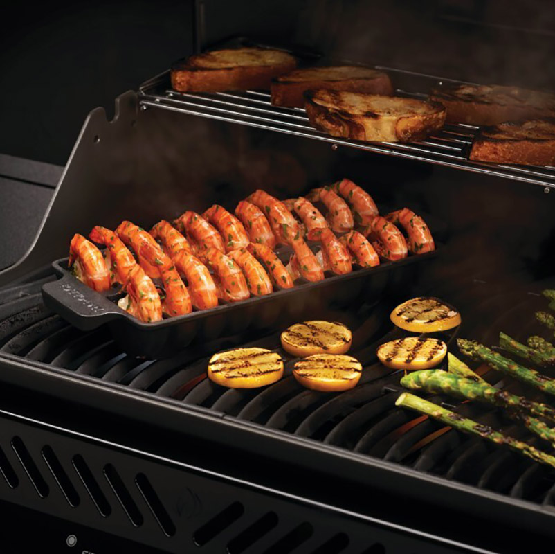 Эмалированная чугунная форма Napoleon предназначена для приготовления больших креветок на гриле или в домашней духовке.