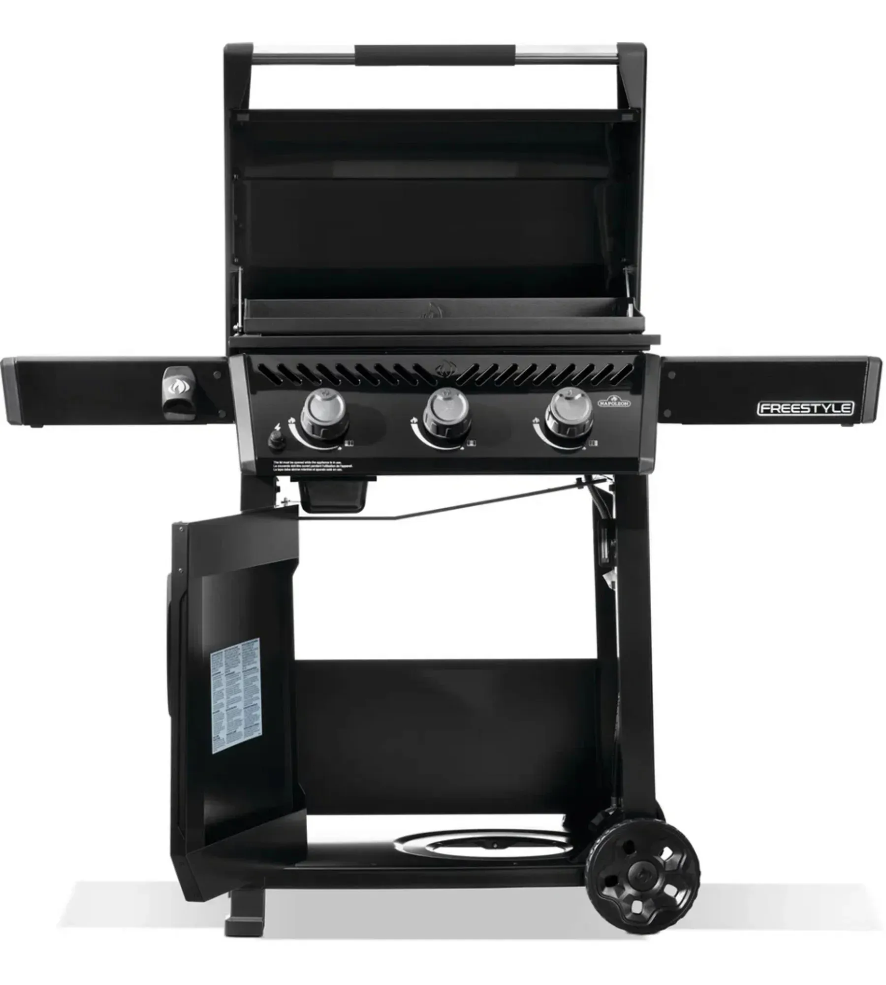 - Складывающиеся пристолья позволяют газовому грилю Napoleon Freestyle найти свое место даже на небольшой террасе