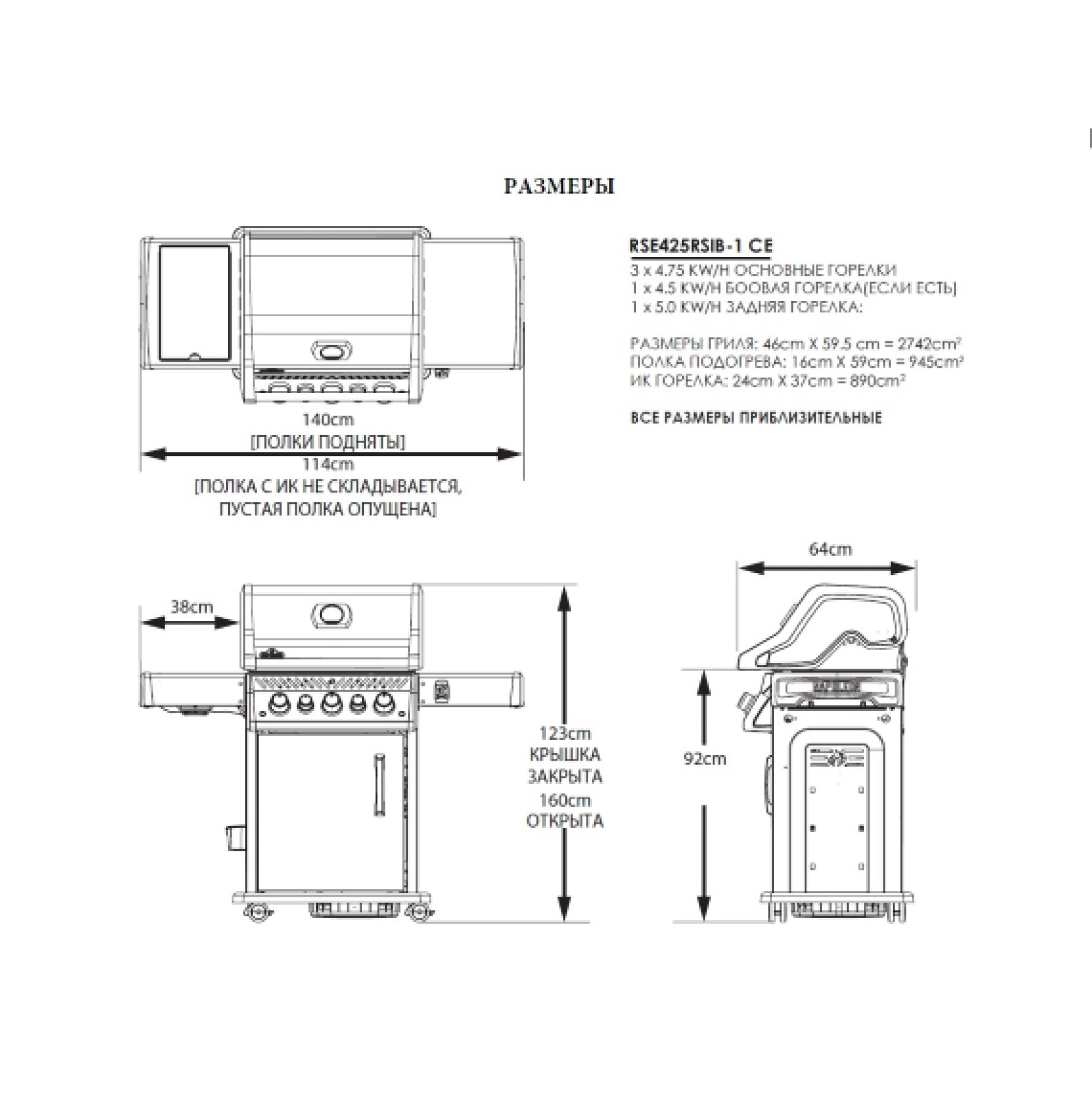 Napoleon Rogue 425 SE газовый гриль, нержавеющая сталь (с ИК горелкой 3/3)